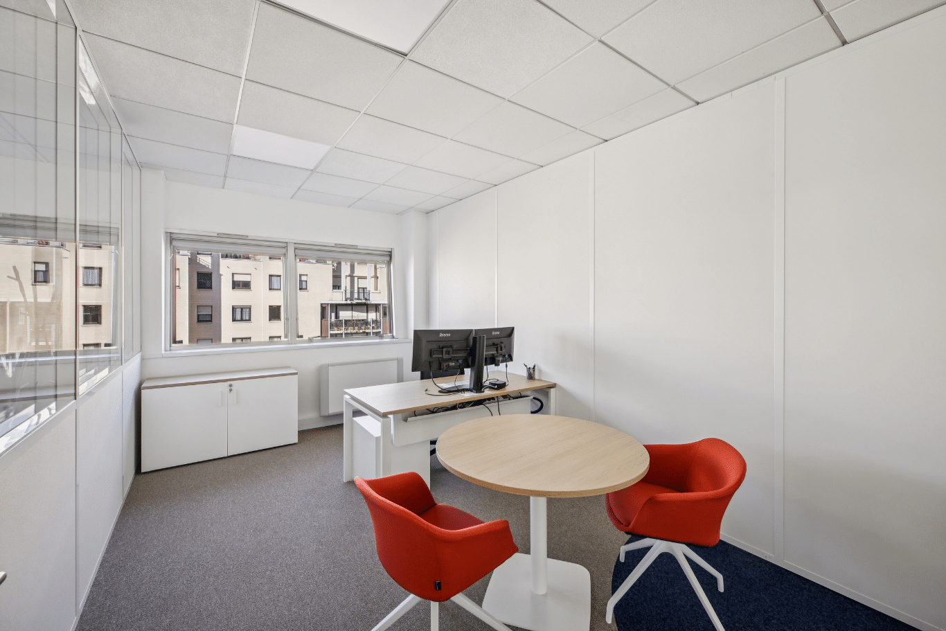 Pour compléter et finir l’installation du plateau de bureau nous avons sélectionner et monter du mobilier de bureaux : postes de travail, rangements, tables de réunion, assises ergonomiques…aussi dans les couleurs de la société pour créer un contraste avec les murs blancs et ainsi rendre l’espace accueillant.