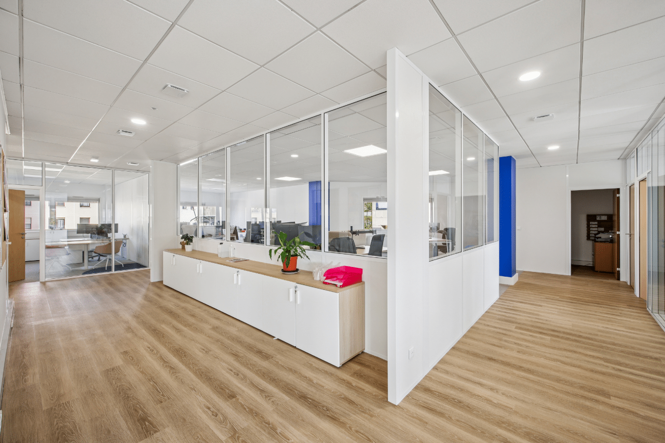 Nos équipes se sont occupés du curage et de la démolition des aménagements existants. Nous avons pu aussi installer des cloisons amovibles modulables pour une flexibilité maximale. En savoir plus sur les cloisons grâce à notre guide dédié.